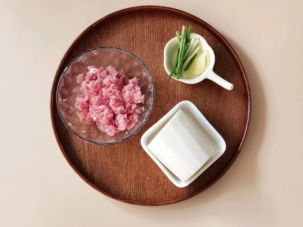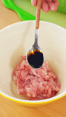 – Cho thịt xay vào tô, thêm gừng băm nhỏ, muối và nước tương vào trộn đều. Củ cải trắng gọt bỏ vỏ, rửa sạch rồi xắt thành sợi. Đặt nồi lên bếp, cho nước lạnh vào rồi đun sôi trên lửa lớn.