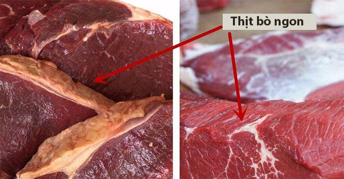 Cách chọn mua thịt bò tươi ngon: Nhìn vào màu sắc của gân. (Ảnh: Sohu)